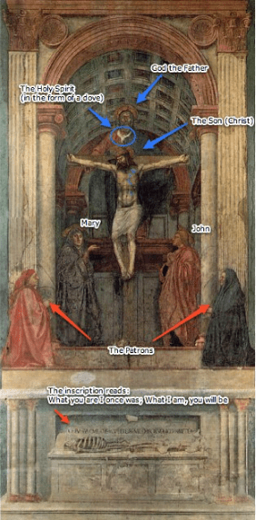 Mosaccio (1401-1328) was the first painter to use Brunelleschi’s mathematical principles regarding perspective in art. He showed this in his masterpiece The Holy Trinity Fresco. This painting portrays Christ’s crucifixion with God the Father standing behind Him. The amount of perspective and shading used in the painting made it revolutionary. There was nothing quite like it. God the Father looks like He was actually standing behind Jesus, and the painting looked realistic by Renaissance standards.