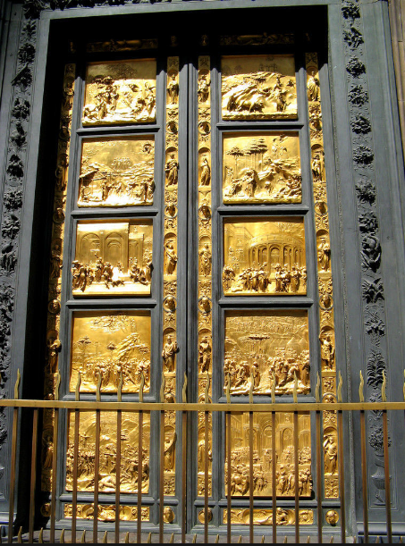 Lorenzo Ghiberti (1378-1455) won the commission to create the bronze doors for the Florentine Baptistery. There were a total of 28 bronze panels that he crafted, and all of them portrayed biblical stories. The entire project took 20 years to complete, but in the end, they turned out beautifully. Michelangelo famously said the panels were beautiful enough to form the literal gateway to heaven.